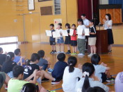 1学期の終業式を行いました。1・3・5年生の代表児童が、1学期に頑張ったことを発表しました。頑張ったことは、「先生や友達の話を聞くことや国語の音読」、「あいさつと自学」、「千田っ子祭りと委員会活動と算数」など、様々でした。頑張った成果が表れていたと思います。終業式後は、わんぱく相撲の表彰を行いました。みんなが頑張った1学期。今日は、欠席者が0(ゼロ)でした。夏休みも元気に楽しく過ごしてほしいと思います。