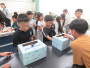 保健委員会主催の手洗い実験の2日目です。2年生と4年生が来てくれました。専用のジェルをつけてからいつも通り手洗いをして、洗い残しがないかブラックライトに手を当てて確かめました。洗い残しがあった人は、もう1度よく洗って確かめていました。