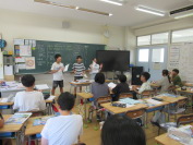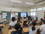 エクシル先生と一緒に外国語活動を行いました。英語で数字と色を聞いて、当てはまるところに色を塗っていきました。元気いっぱいの1年生は、英語の発音も大きな声で、元気にできました。楽しみながら英語に親しんでいます。