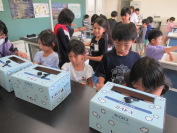針と糸を使って、手縫いで布を縫う学習をしています。玉結び、玉どめ、縫い方の基本となるなみぬいや返しぬいなどを練習しています。今日は、ボタンつけにも挑戦です。子どもたちはみんな集中して取り組んでいました。
