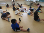 今日の集会タイムは、体育委員会の「簡単なストレッチと運動」です。体育委員会が作った動画を観ながら、各教室でストレッチと運動をしました。夏休みもお家でできそうですね。