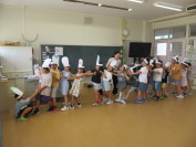 1年生は、和泉小学校に出かけて、和泉小学校の1・2年生と交流してきました。水遊びをしたり、シャボン玉遊びをしたり、自己紹介をしたりして、楽しく交流することができました。全身びしょ濡れでも楽しくて仕方がありません。みんなの笑顔がはじける交流会でした。