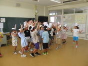 国語で「おおきなかぶ」を学習しました。今日は、自分のやりたい役を決めてお面を作り、みんなで劇をしました。1年生は、お話の文章を全部暗記して、みんなで言いながら劇をしました。最後は、やっとかぶがぬけて大喜びです。上手にできましたね。