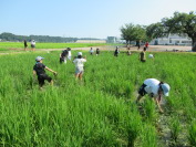 5年生は、28日から30日の3日間、朝の涼しい時間に学校田の草取りをしました。6月に田植えをしてから、稲が大きくなり、草もたくさん生えていました。参加可能な日に子どもたちが来て、一生懸命に草取りを頑張っていました。3日間で大きな草を取り尽くしました。毎日暑い日が続きますが、頑張った5年生でした。これから稲もどんどん生長することでしょう。