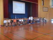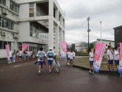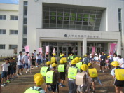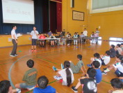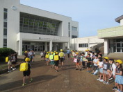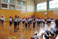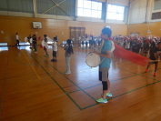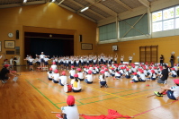 明日の親善陸上大会に向けて、親善陸上大会激励会を全校で行いました。大会に参加する6年生を種目ごとに紹介した後、全校のみんなで、三三七拍子のエールを送りました。明日は、6年生一人一人が自分の力を出し切って、頑張ってほしいと思います。全校のみんなが応援しています。