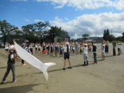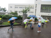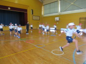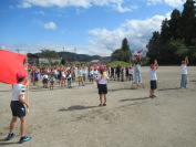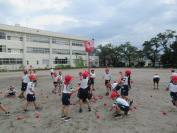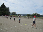 グラウンドで1・2年生合同で玉入れの練習をしました。並び方や出入りの練習をして、最後に、実際に玉入れをしました。次回は、踊りも練習する予定です。