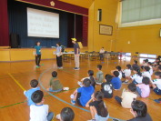 全校でソーシャルスキルの学習をしました。今月の生活目標は「気持ちのよいあいさつと返事をしよう」です。先生方の劇を見て、よくないところを考えたり、6年生も劇に参加し、クラスでのよいあいさつの仕方をやって見せてくれました。全校で学んだ後は、各学級で、いろいろな場面でのあいさつを実際に練習しました。