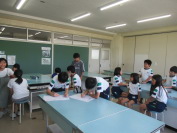 3年生は、総合の学習で、スイカの先生に感謝する会を計画しています。どのような会にするのか、みんなで意見を出し、話し合っていました。5年生は、音楽の学習です。鍵盤ハーモニカで和音を練習していました。「静かにねむれ」の曲に合わせて和音を弾きながら、和音の響きの移り変わりを感じ取っていました。