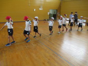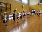 雨天のため、現地練習に行くことができませんでしたが、体育館で和泉小学校の5・6年生一緒に陸上練習を行いました。声を出し合いながら、陸上練習でよい交流ができました。来週は、一緒に現地練習にいけるといいですね。